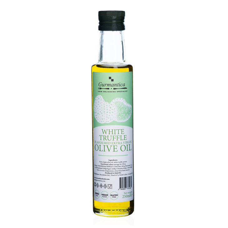Naše maslinovo ulje s okusom crnog i bijelog tartufa izrađeno je od najfinijih crnih ili bijelih tartufa i ekstra djevičanskog maslinovog ulja.
