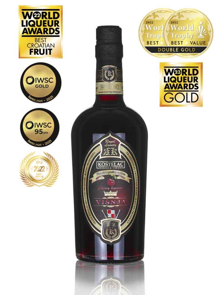 LIKER višnja – Liker od višnje je 100 % prirodan proizvod koji je u potpunosti ručno proizveden po tradicionalnoj recepturi. Nakon berbe, svježe višnje stavljaju se na maceraciju (odležavanje) u vrhunski destilat. Nakon šest mjesečnog odležavanja, višnje se odvajaju, a liker se pretače na daljnje sazrijevanje. U tehnološkom procesu proizvodnje ne koriste se nikakvi aditivi (boje, arome, sladila, konzervansi i sl.), a liker je proizveden od samo četiri sastojka: svježih višanja (min. 50%), vrhunskog destilata, vode i šećera. Kako bi se zadržale sve karakteristične arome, nakon minimalno godinu dana odležavanja i prirodnog taloženja, u vrhuncu svoje zrelosti, puni se u boce bez prethodnog filtriranja. Zbog samog načina proizvodnje i visokog udjela voća (min. 50%), na dnu boce se može pojaviti fini talog, koji je samo rezultat prirodnosti proizvoda. Servira se ledeno ohlađeno kao samostalno piće ili kao sastavni dio koktela.