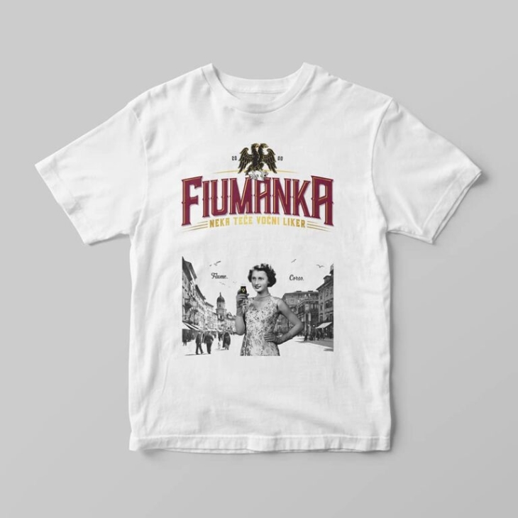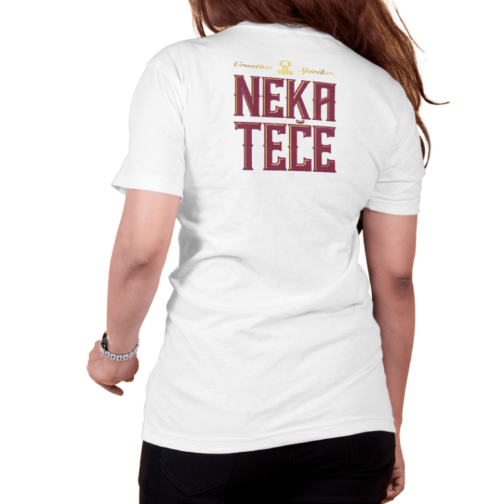 Ženske bijele pamučne majice sa višebojnim tiskom, specijalni efekt zlatna boja. Dostupne veličine MEDIUM.