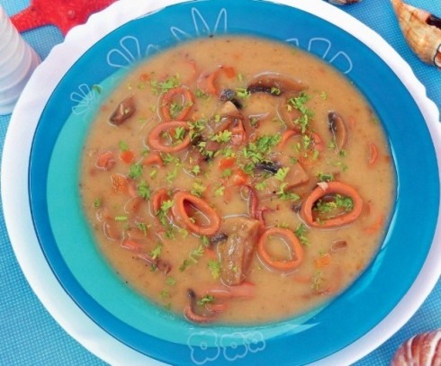U litru hladne slane vode stavimo kuhati lignje te dodamo luk, češnjak, peršin i ulje.