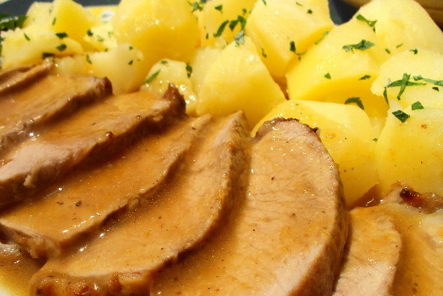 Pirjano meso izrežemo u odreske,njih složimo na zagrijani pladanj i stavimo na toplo.