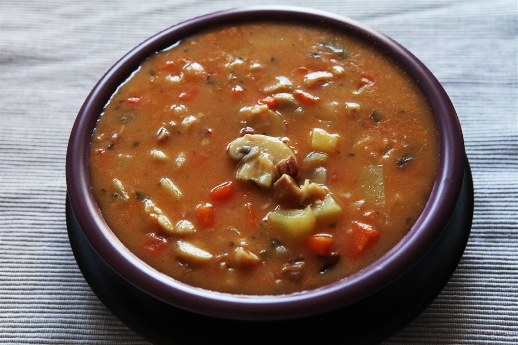 Dodati na komadiće izrezanu vratinu, šampinjone, slatku crvenu papriku u prahu (po želji), svježu papriku, mrkvu, sol, mažuran, papar i lovorov list.