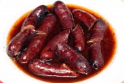 Pomiješajte vino s istom količinom vode (3,5 dl) te ulijte u lončić. Kobasice stavite u tekućinu te stavite na laganu vatru da zakipi. Kuhajte oko 10-15 minuta . Kobasice izvadite i odložite na toplo.