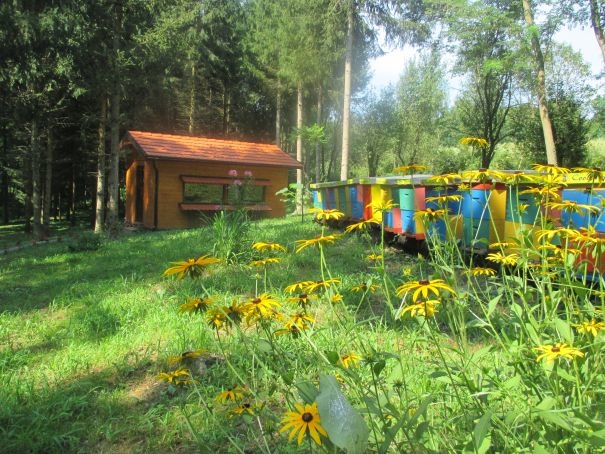 Nadalje u kućici se nalazi i ležaj ispod čijeg uzglavlja je otvorena košnica zaštićena sigurnosnom mrežom, tako da možete ležati i uživati u smirujućem zujanju pčelica, dok Vas zapljuskuje aromatičan miris košnice i pčela.