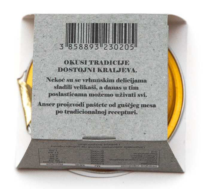Aromatični pate s 32% guščjeg mesa i odabranim prirodnim začinima, obogaćena biljnim uljem i