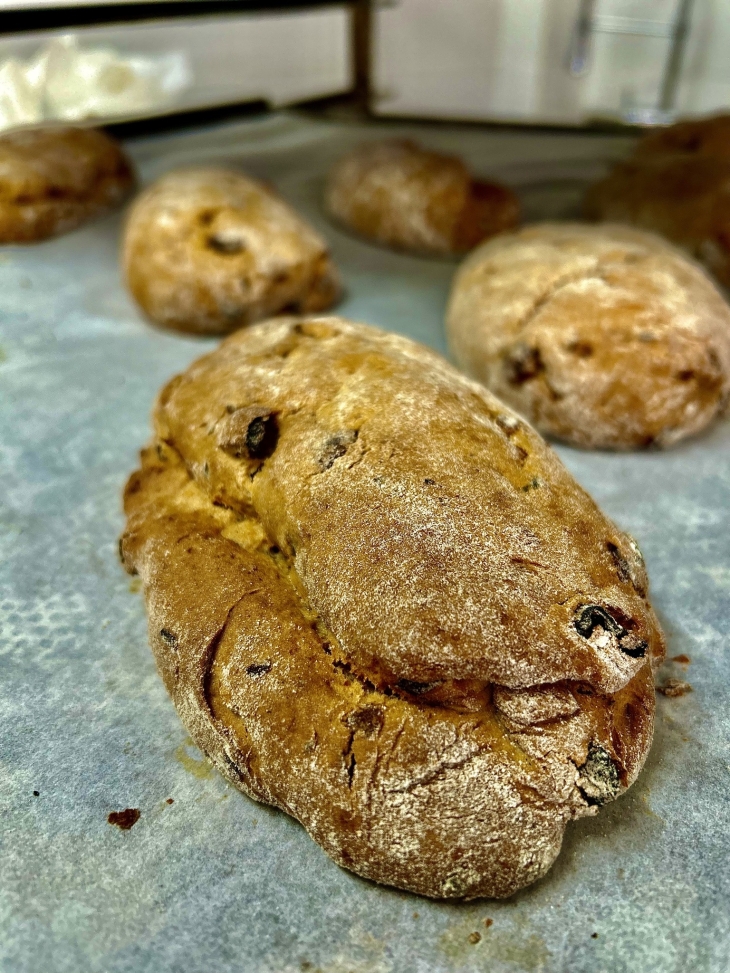 Stollen, aromatičan i bogat okusima - maslac, sočna naranča, svježi limun, hrskavi orasi, slatke grožđice,bučine sjemenke i arancini.